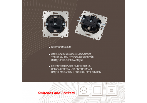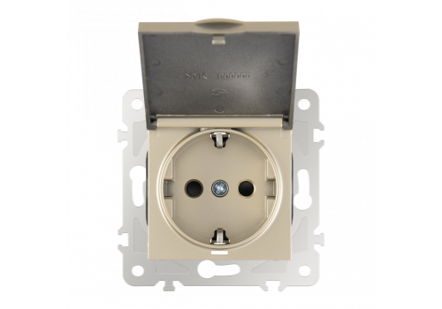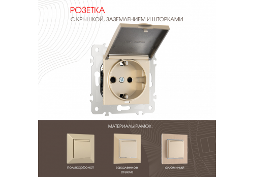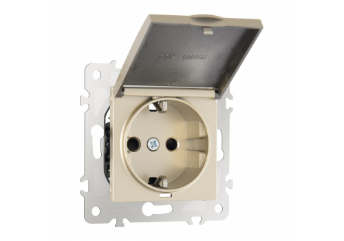 Розетка с заземлением, шторками и защитной крышкой Arte Milano 203.41-1.shampan