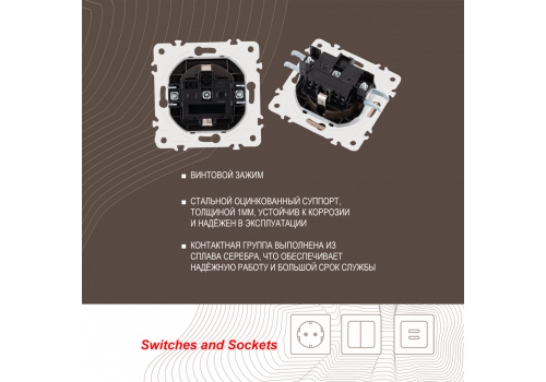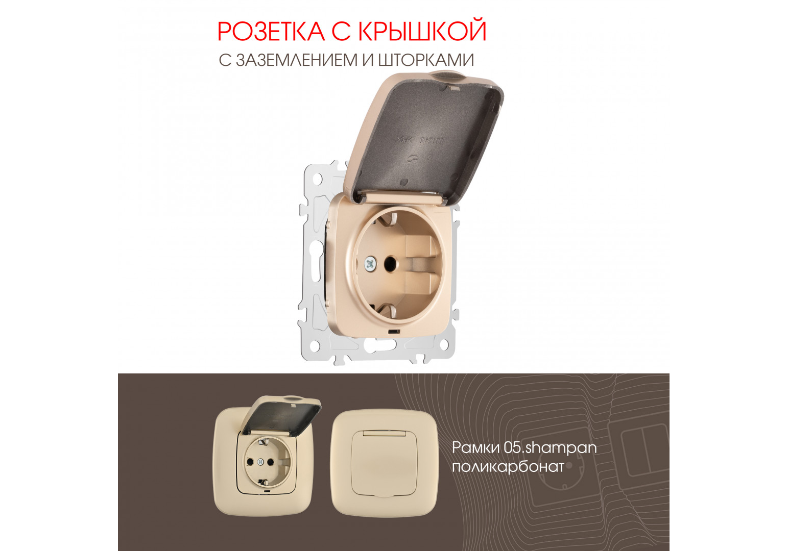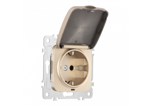 Розетка с заземлением, шторками и защитной крышкой Arte Milano 205.41-1.shampan