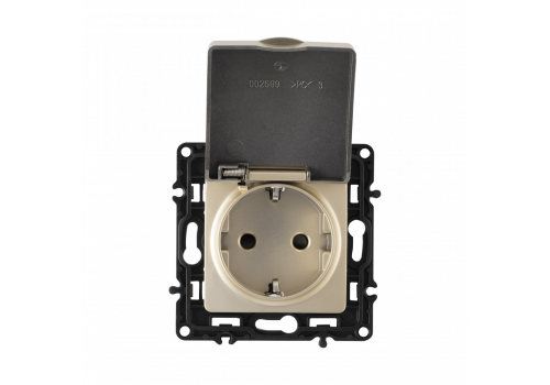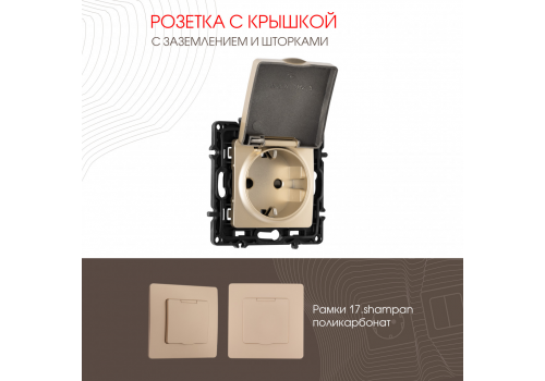 Розетка с заземлением, шторками и защитной крышкой Arte Milano 217.41-1.shampan