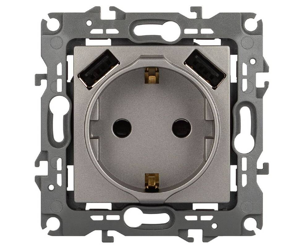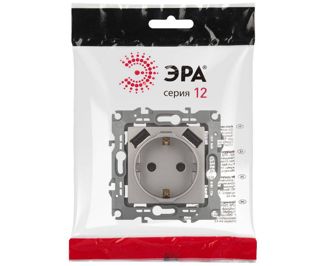 Розетка со шторами и 2 USB Эра 12-4109-16 Б0065729