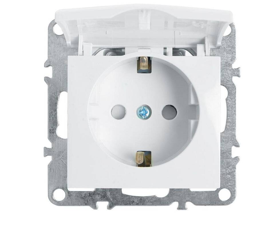 Розетка Stekker Эрна с/з 16A 250V с крышкой защитной шторкой белый PST16-9112-01 39319