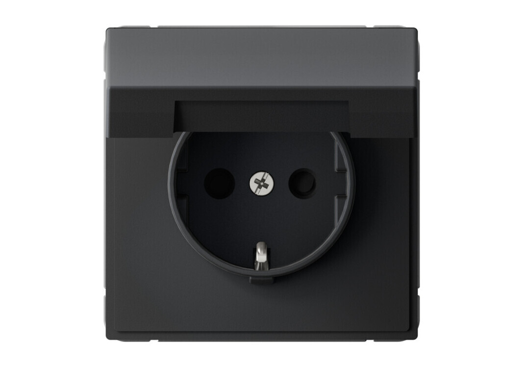 Розетка Systeme Electric ARTGALLERY, скрытый монтаж, с заземлением, с крышкой, со шторками, карбон