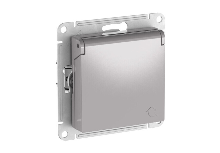 Розетка Systeme Electric ATLAS DESIGN, скрытый монтаж, с заземлением, с крышкой, со шторками, быстрозажимные клеммы, алюминий