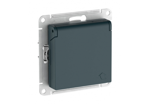 Розетка Systeme Electric ATLAS DESIGN, скрытый монтаж, с заземлением, с крышкой, со шторками, быстрозажимные клеммы, изумруд