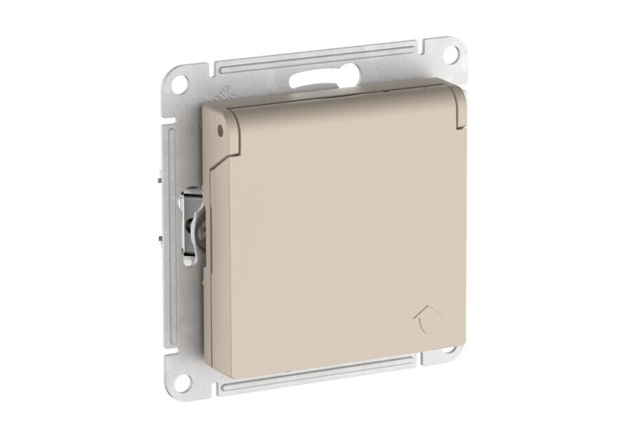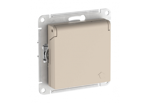 Розетка Systeme Electric ATLAS DESIGN, скрытый монтаж, с заземлением, с крышкой, со шторками, быстрозажимные клеммы, песочный