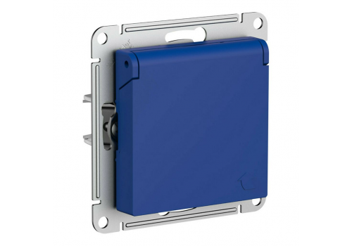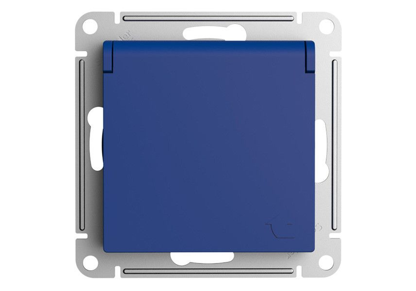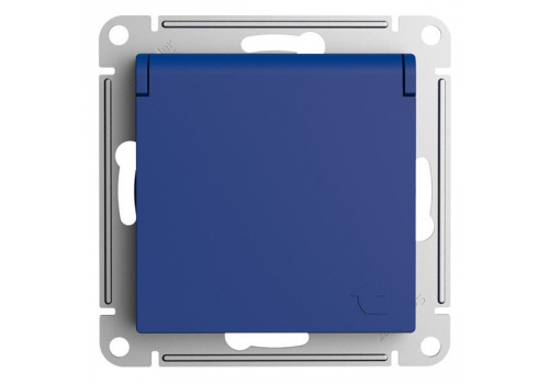 Розетка Systeme Electric ATLASDESIGN, скрытый монтаж, с заземлением, с крышкой, со шторками, аквамарин