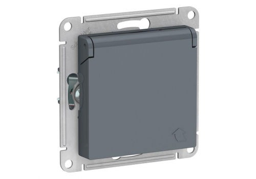 Розетка Systeme Electric ATLASDESIGN, скрытый монтаж, с заземлением, с крышкой, со шторками, винтовые клеммы, грифель