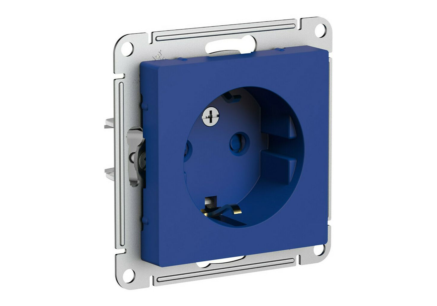 Розетка Systeme Electric ATLASDESIGN, скрытый монтаж, с заземлением, со шторками, аквамарин