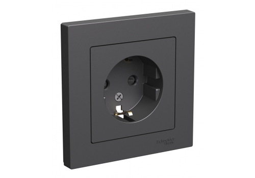 Розетка Systeme Electric ATLASDESIGN, скрытый монтаж, с заземлением, со шторками, базальт