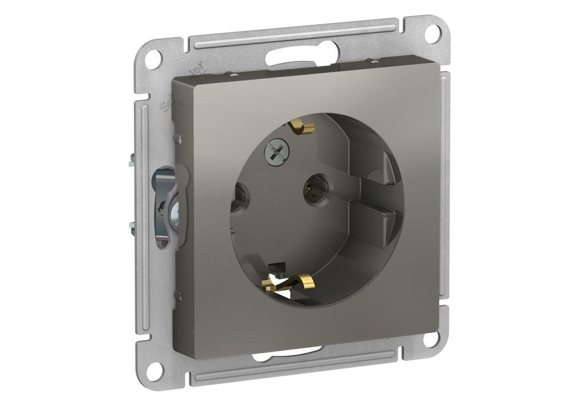 Розетка Systeme Electric ATLASDESIGN, скрытый монтаж, с заземлением, сталь