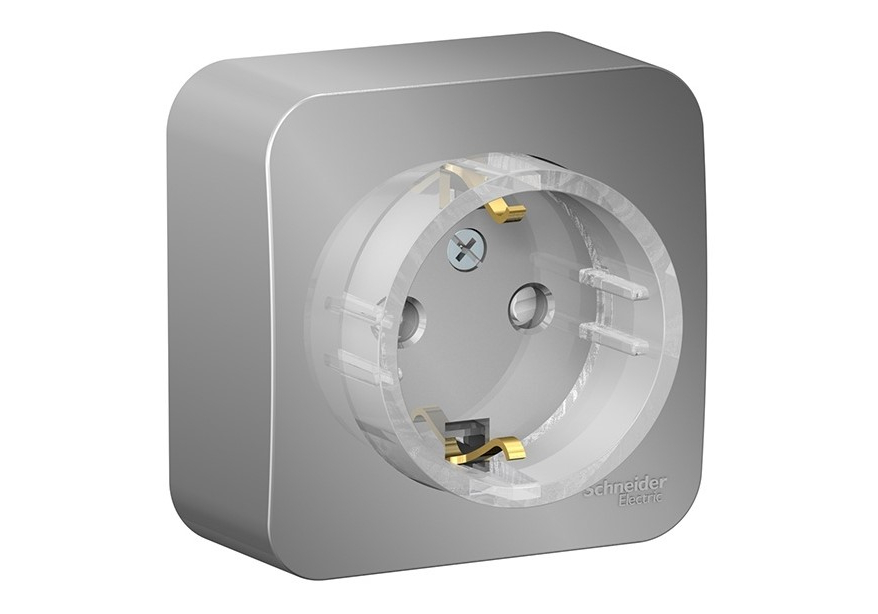 Розетка Systeme Electric BLANCA, открытый монтаж, с заземлением, со шторками, алюминий