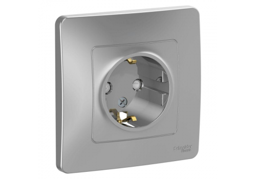 Розетка Systeme Electric BLANCA, скрытый монтаж, с заземлением, со шторками, алюминий
