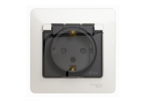 Розетка Systeme Electric GLOSSA, скрытый монтаж, с заземлением, с крышкой, со шторками, перламутр