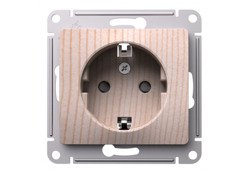 Розетка Systeme Electric GLOSSA, скрытый монтаж, с заземлением, со шторками, сосна