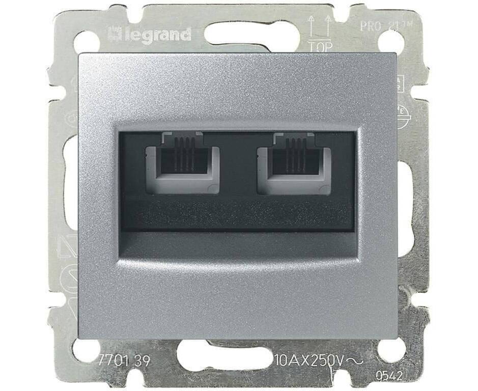 Розетка телефонная 2хRJ11 Legrand Valena алюминий 770139