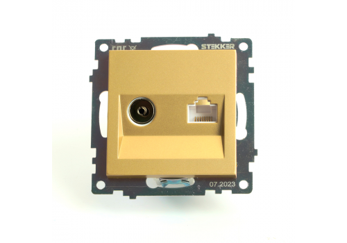 Розетка телевизионная TV + компьютерная RJ-45 Stekker Катрин золото GLS00-7106-08 49230