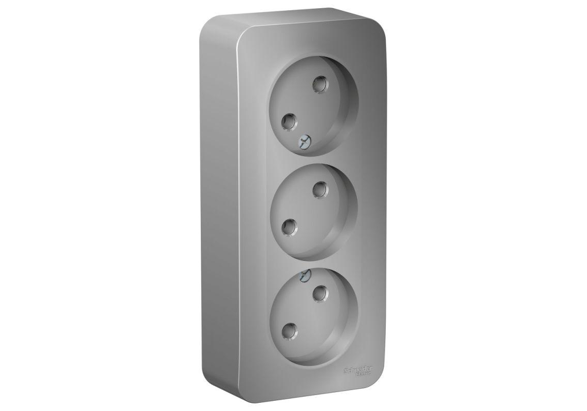 Розетка трехместная Systeme Electric BLANCA, открытый монтаж, без заземления, алюминий