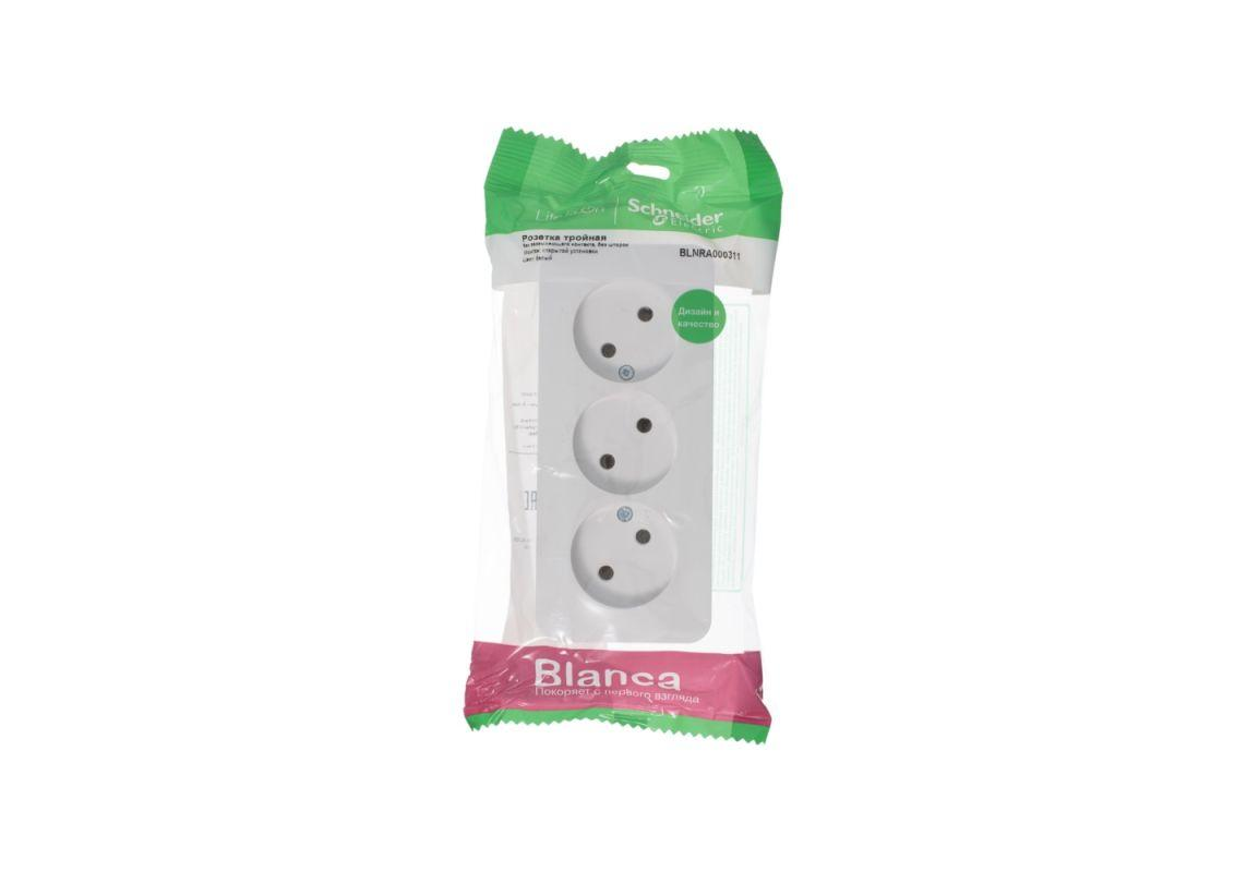 Розетка трехместная Systeme Electric BLANCA, открытый монтаж, без заземления, белый