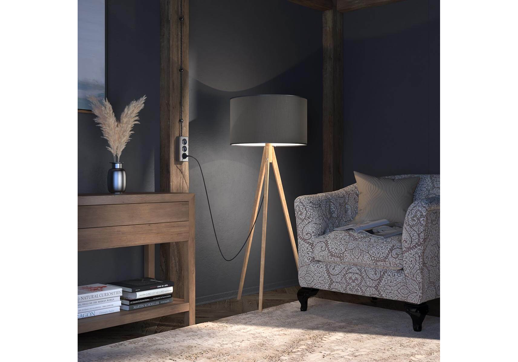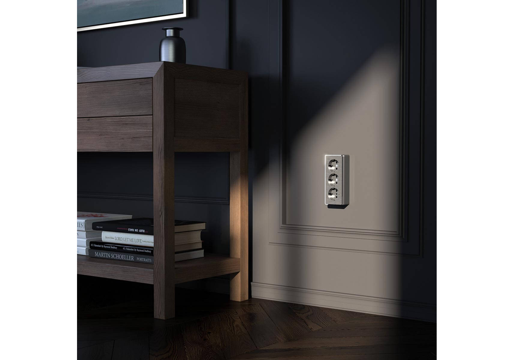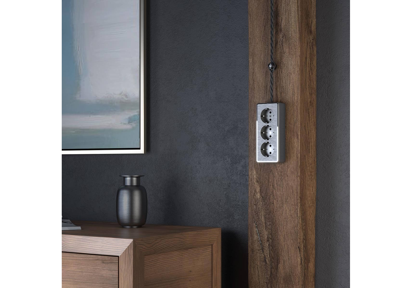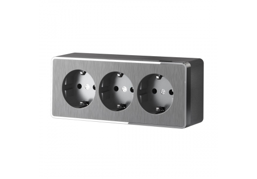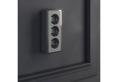 Розетка тройная с/з со шторками Werkel Gallant графит рифленый W5073104 4690389163852