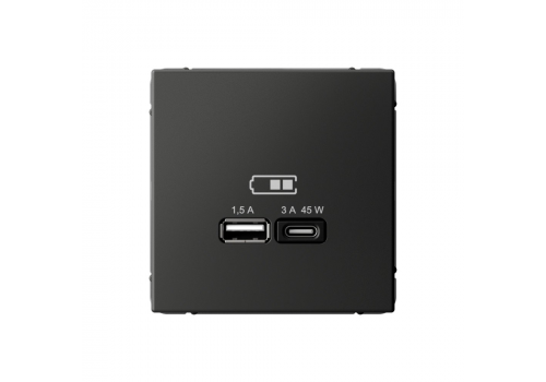 Розетка USB+USB type C Systeme Electric ARTGALLERY, скрытый монтаж, базальт