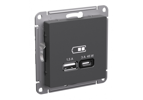 Розетка USB+USB type C Systeme Electric ATLASDESIGN, скрытый монтаж, базальт