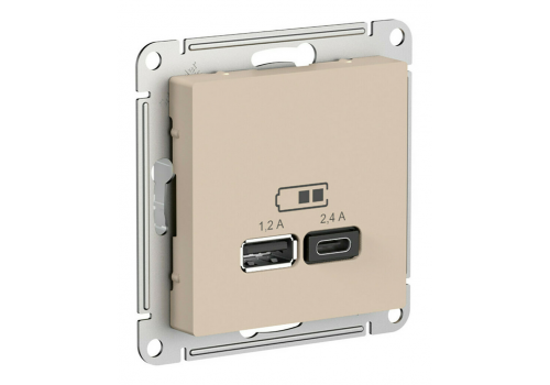 Розетка USB+USB type C Systeme Electric ATLASDESIGN, скрытый монтаж, песочный