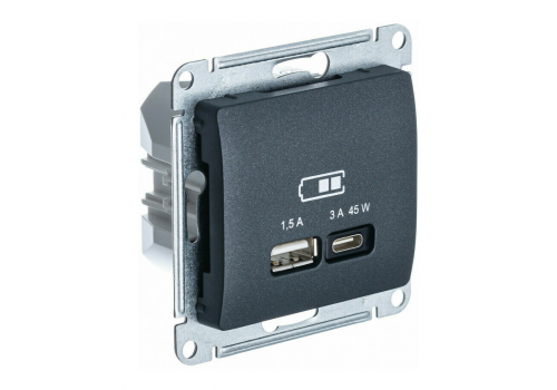 Розетка USB+USB type C Systeme Electric GLOSSA, скрытый монтаж, антрацит