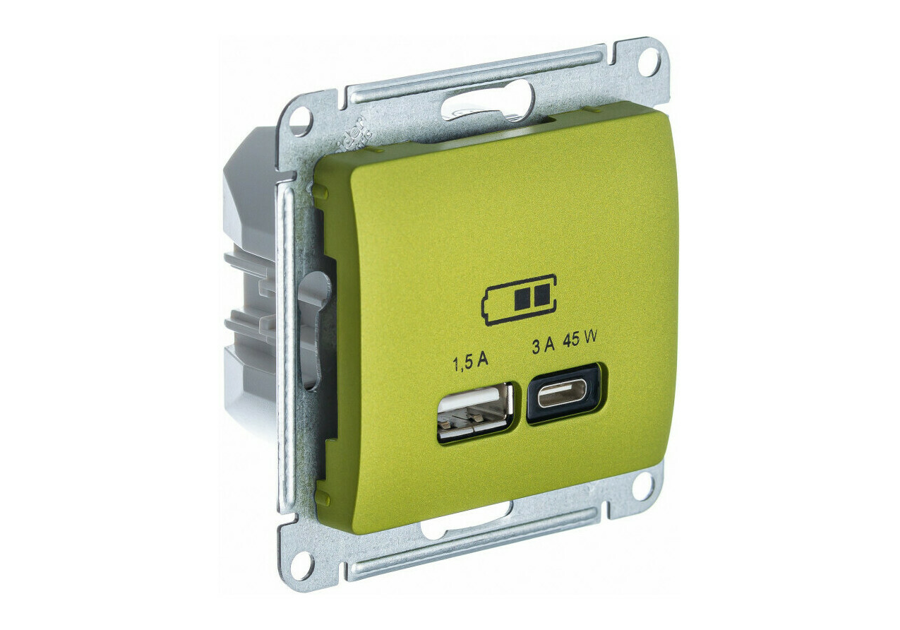 Розетка USB+USB type C Systeme Electric GLOSSA, скрытый монтаж, фисташковый