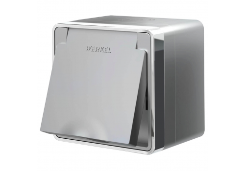 Розетка влагозащищенная с заземлением с защитной крышкой и шторками Werkel Gallant серебряный W5071206 4690389167171
