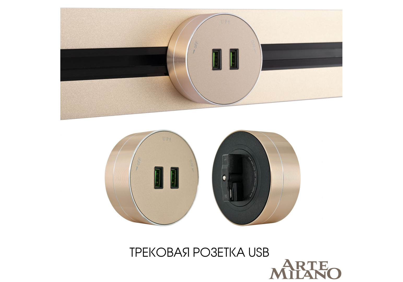 Трековая розетка Arte Milano Am-track-sockets 380011TS/USBx2 Gold