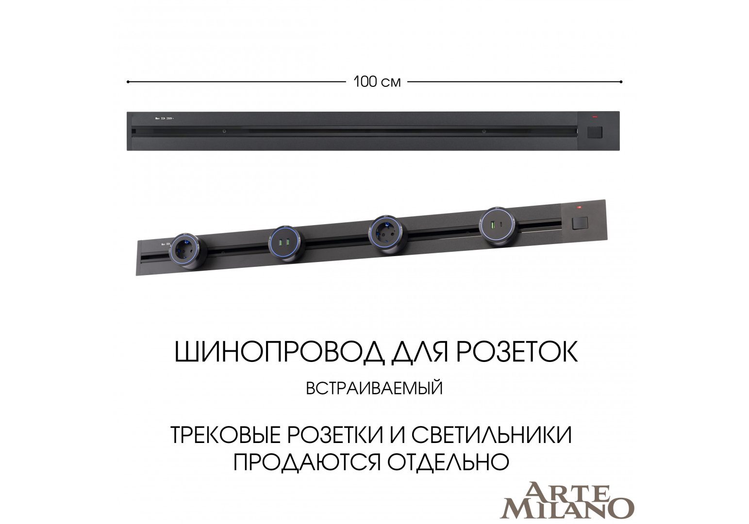 Встраиваемый шинопровод с выключателем Arte Milano Am-track-sockets 385201TBB/100 Black