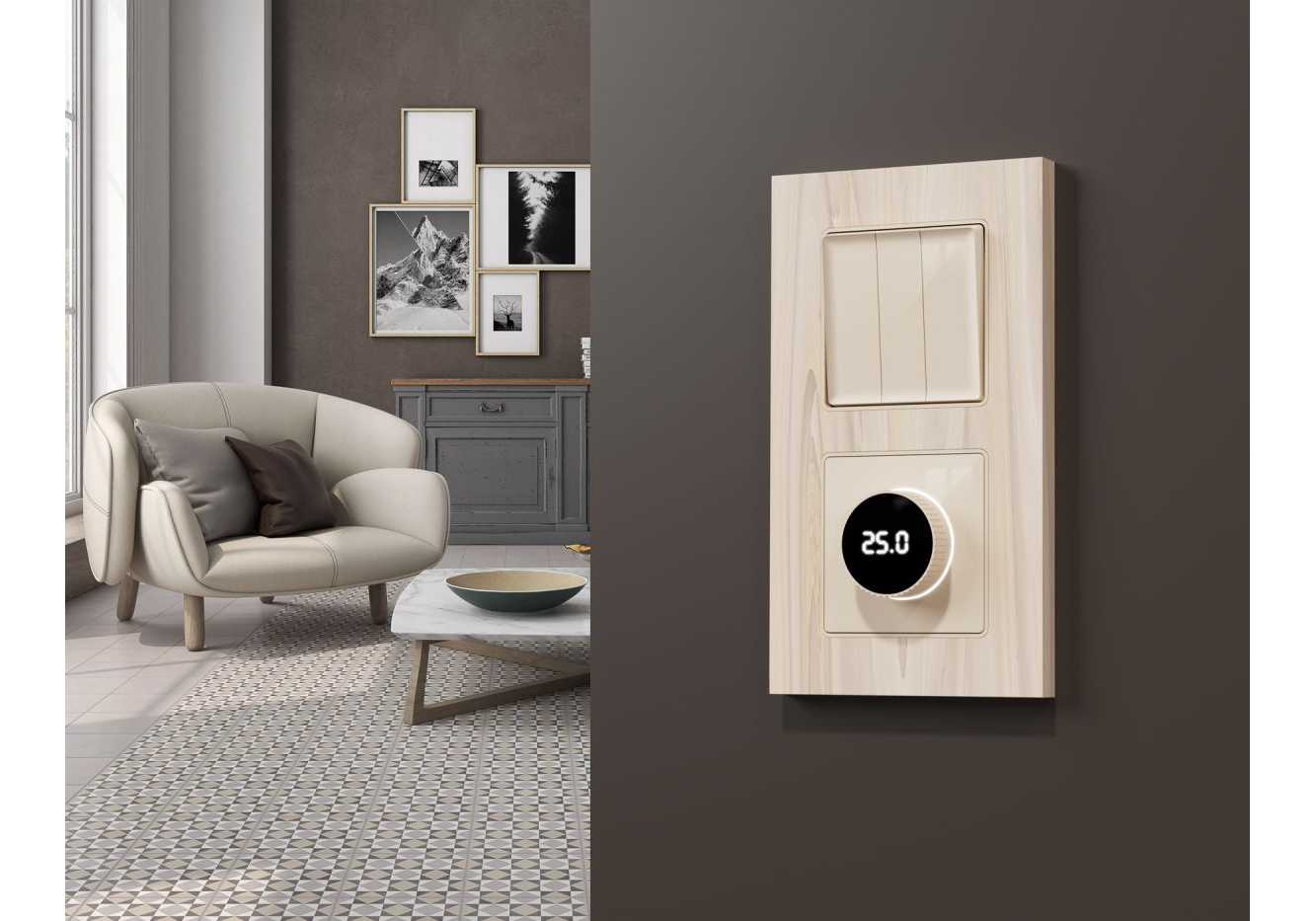 Комплект механизма терморегулятора с цифровым дисплеем с подсветкой и датчиком для теплого пола Alfa