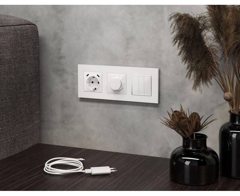 Комплект механизма терморегулятора с датчиком для теплого пола с подсветкой 16A-250V Alfa Белый глян