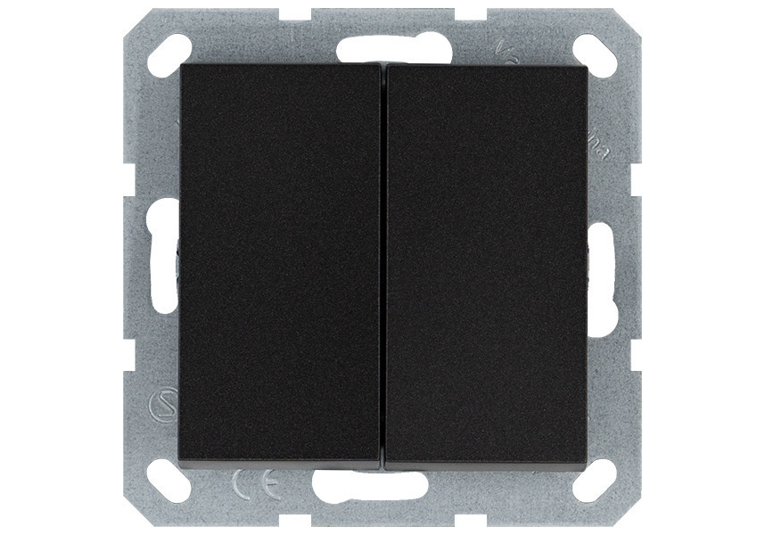 Кнопка 2 клавишная с переключающим контактом 10А, 250В, цвет антрацит Jasmart G3020B