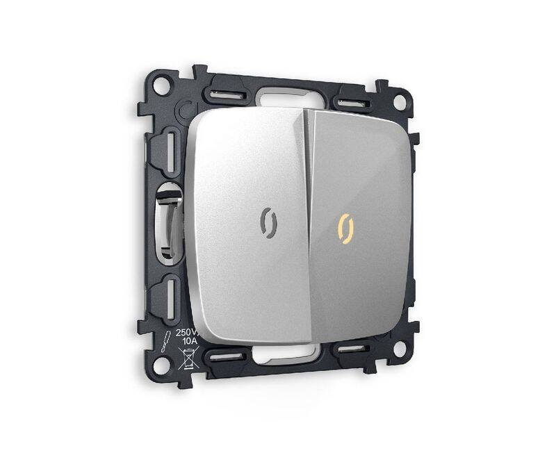 Комплект механизма 2-кл проходного выключателя с подсветкой Ambrella Volt Omega MO404030