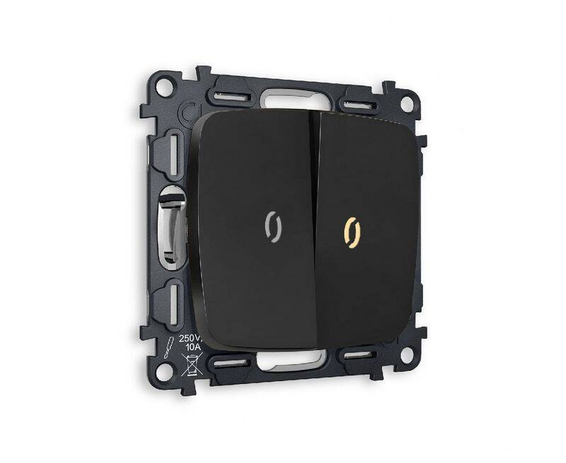 Комплект механизма 2-кл проходного выключателя с подсветкой Ambrella Volt Omega MO804030