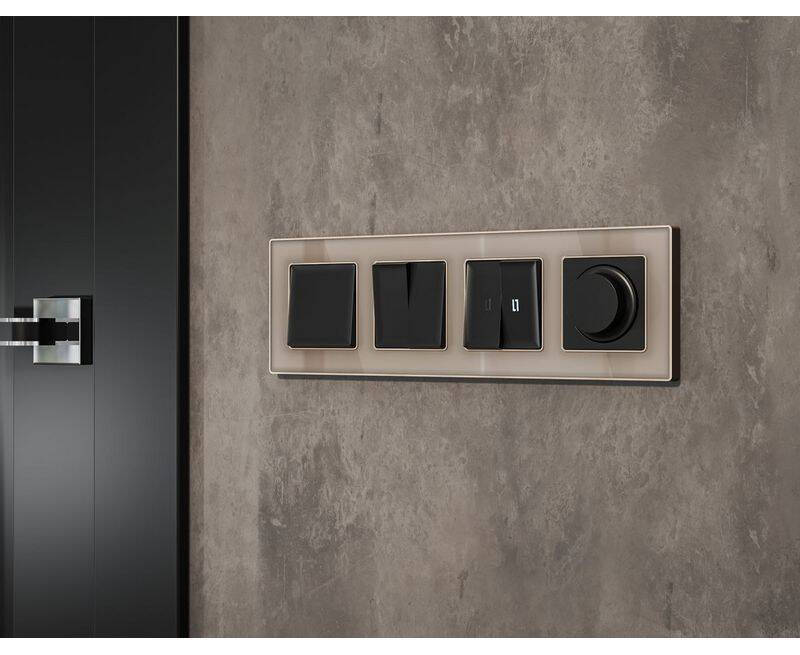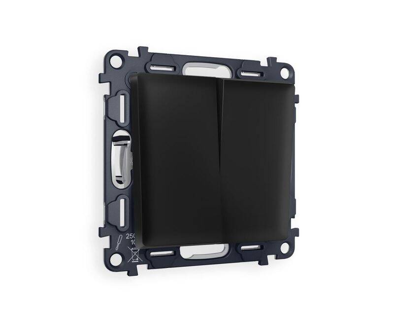 Комплект механизма 2-клавишного перекрестного выключателя 10A-250V Alfa Черный матовый Quant Ambrell