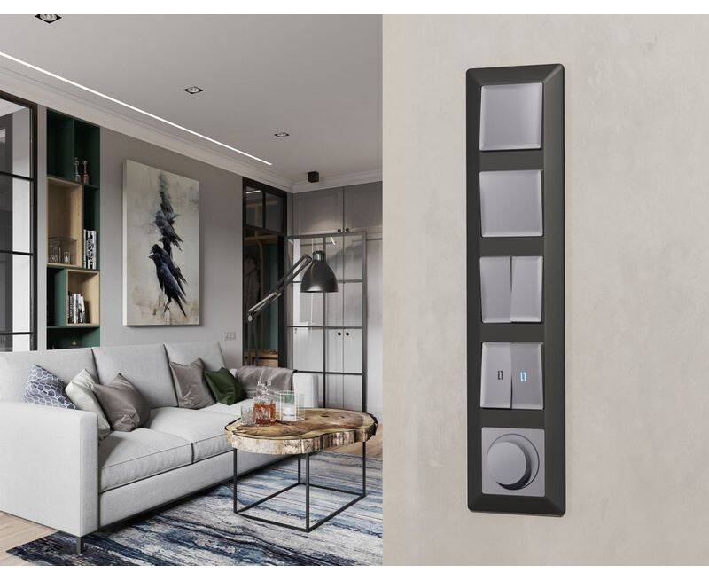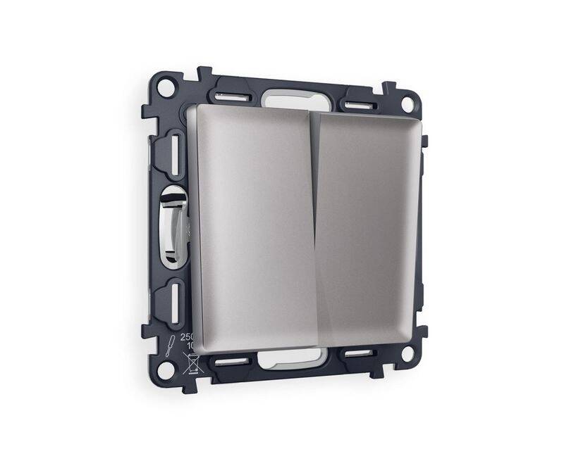 Комплект механизма 2-клавишного перекрестного выключателя 10A-250V Alfa Сталь матовый Quant Ambrella