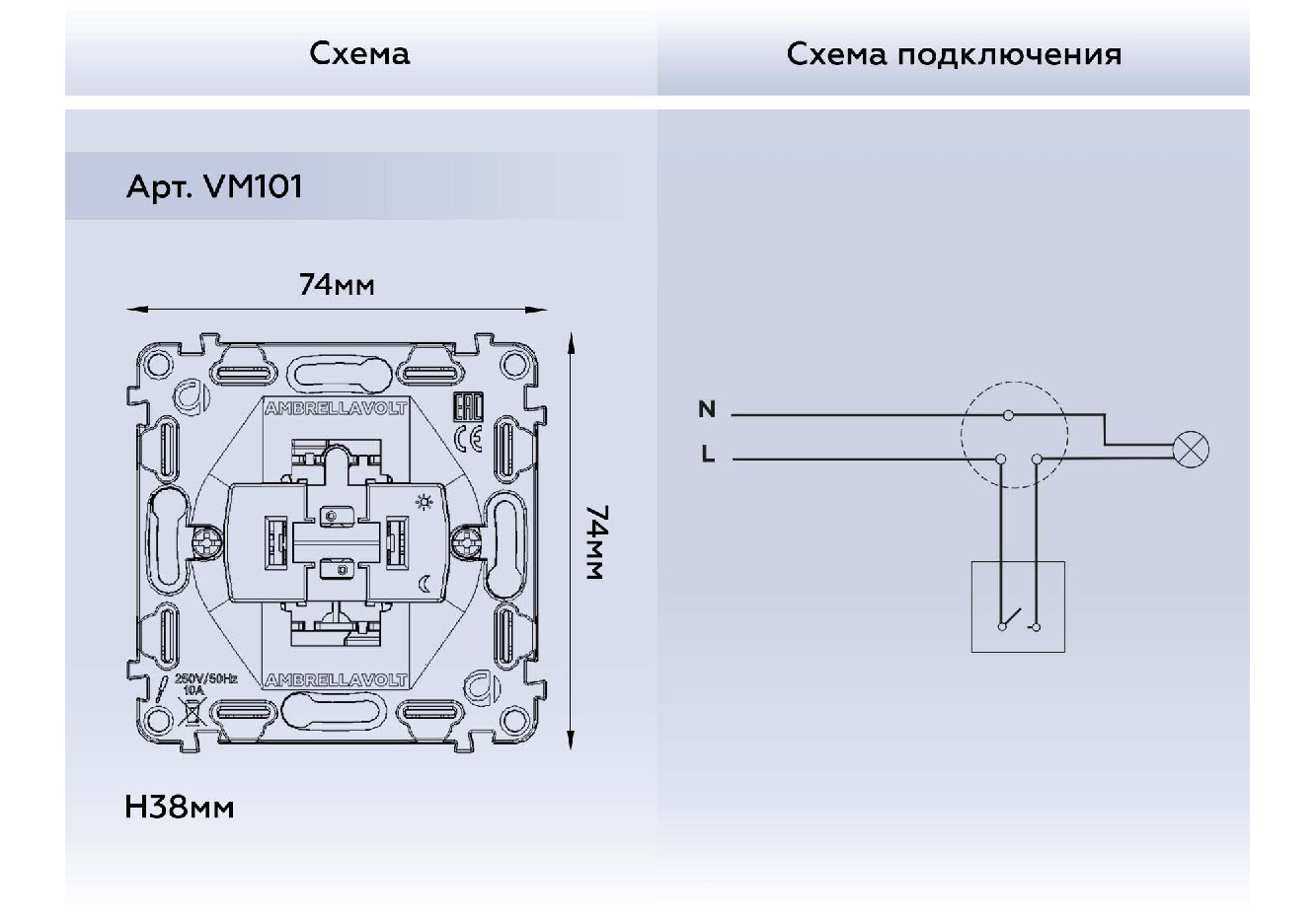 Механизм 1-кл выключателя Ambrella Volt Quant VM101