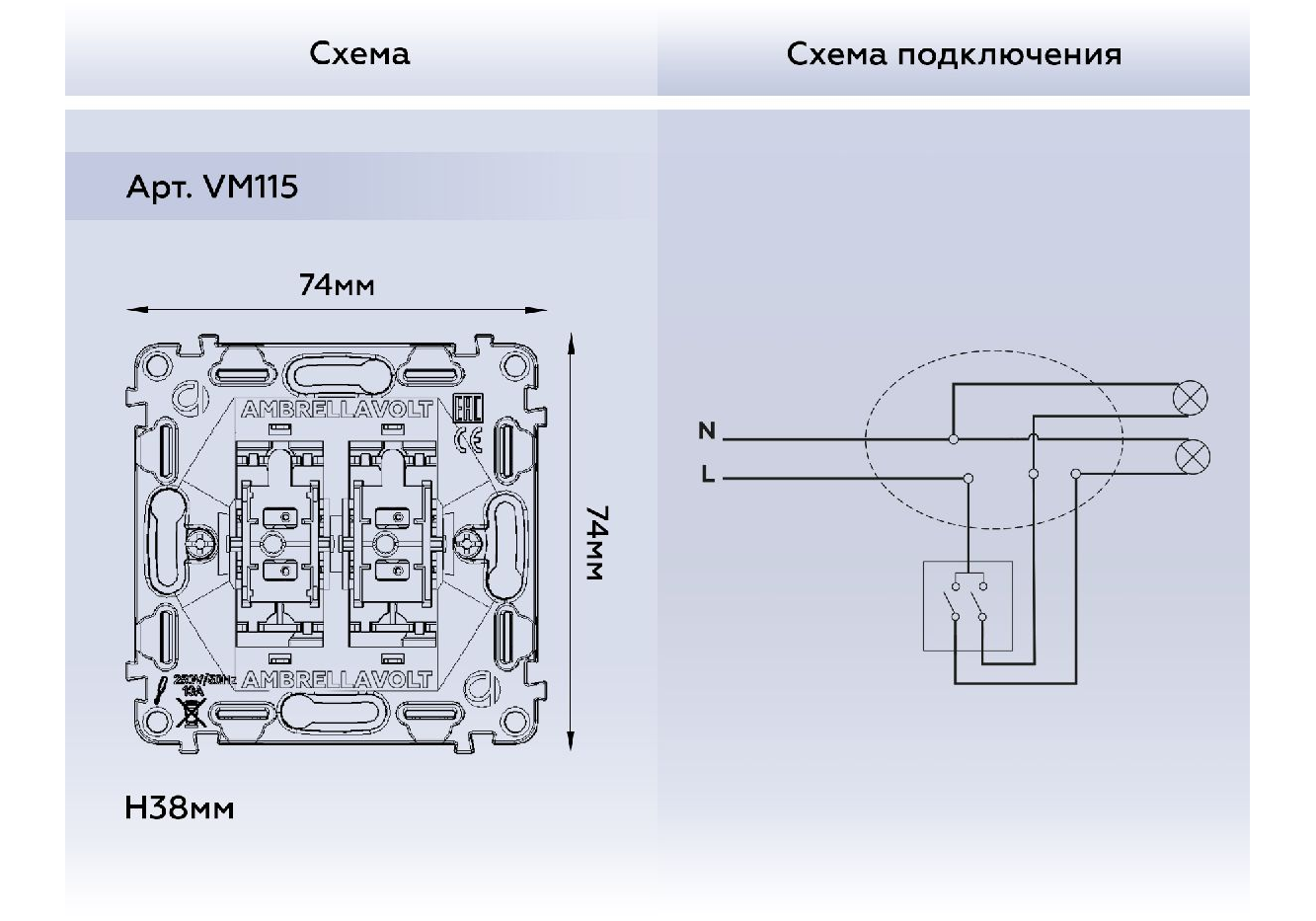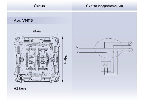 Механизм 2-кл выключателя Ambrella Volt Quant VM115