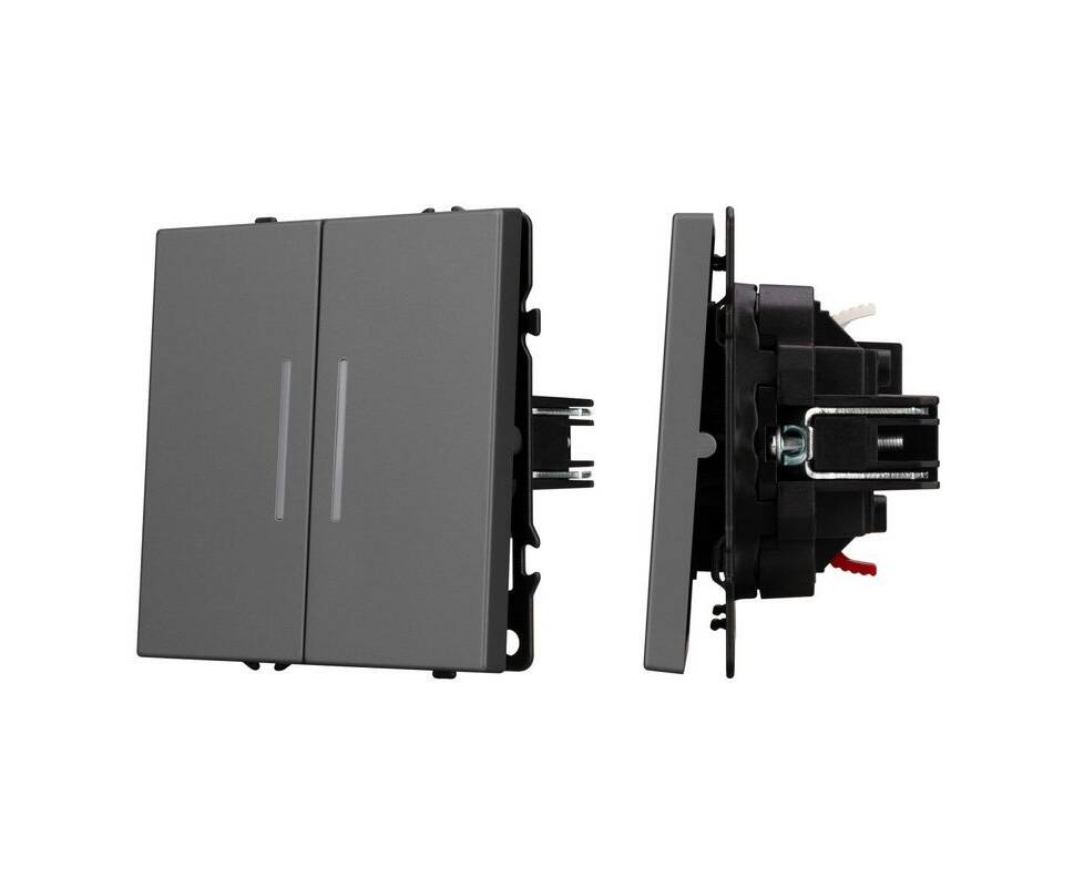 Механизм выключателя двухклавишный непроходной Arlight LED SWT-NOBE-MK02-SFPL-L-GR (230V, 10A) 05426