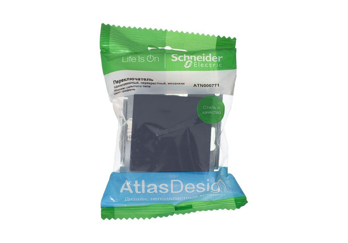 Переключатель 1-клавишный перекрестный Systeme Electric ATLASDESIGN, скрытый монтаж, грифель