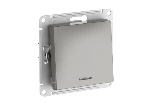 Переключатель 1-клавишный Systeme Electric ATLAS DESIGN, с подсветкой, скрытый монтаж, быстрозажимные клеммы, сталь