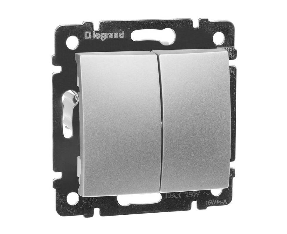 Переключатель двухклавишный на 2 направления Legrand Valena 10A 250V алюминий 770108