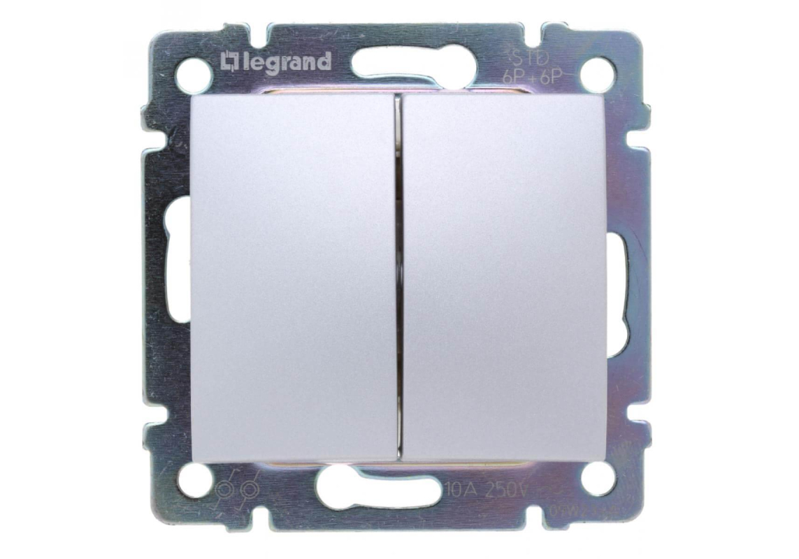 Переключатель кнопочный двухклавишный Legrand Valena алюминий 770218