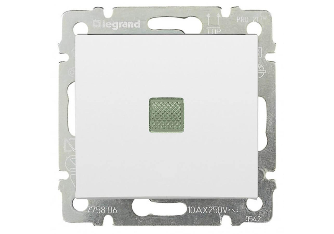 Переключатель одноклавишный промежуточный Legrand Valena 10A 250V с подсветкой белый 774448