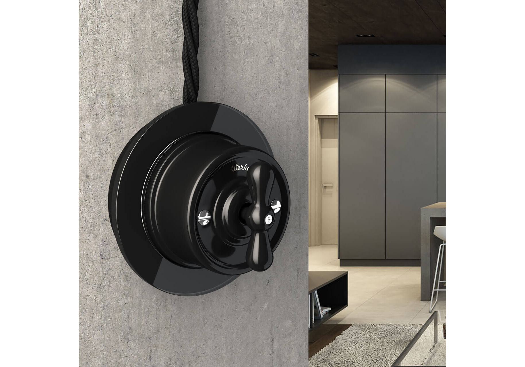 Переключатель-выключатель Werkel одноклавишный Retro черный W5612008 4690389166716
