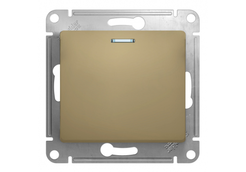 Выключатель 1-клавишный кнопочный Systeme Electric GLOSSA, с подсветкой, скрытый монтаж, титан