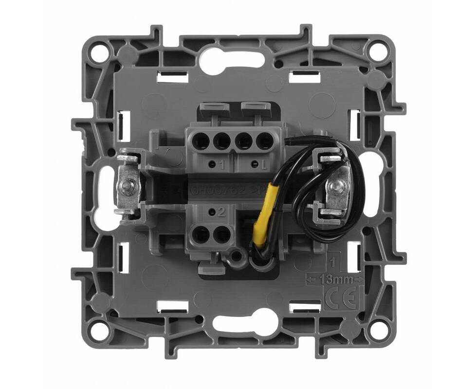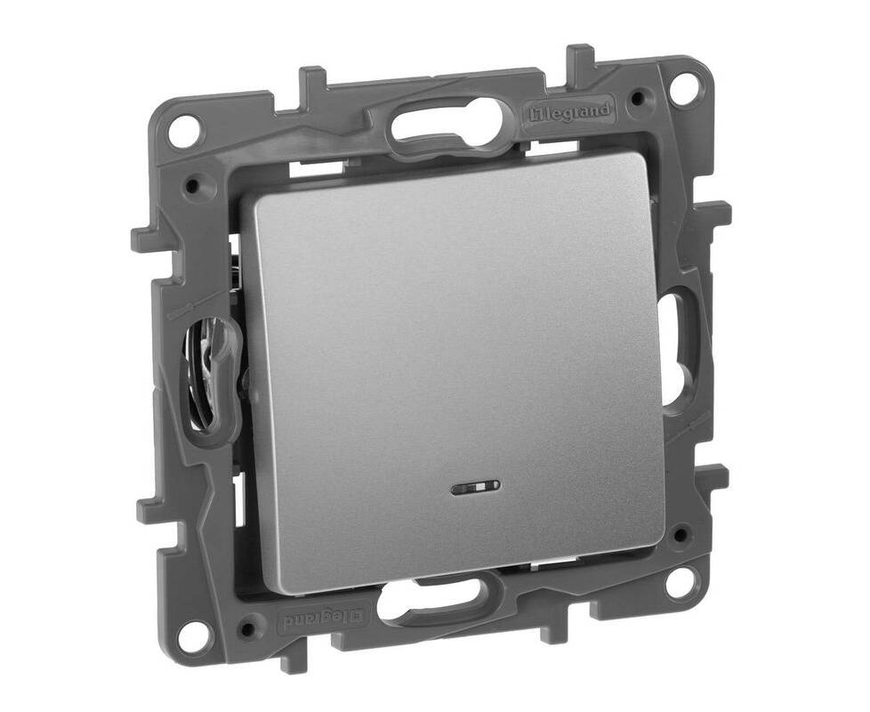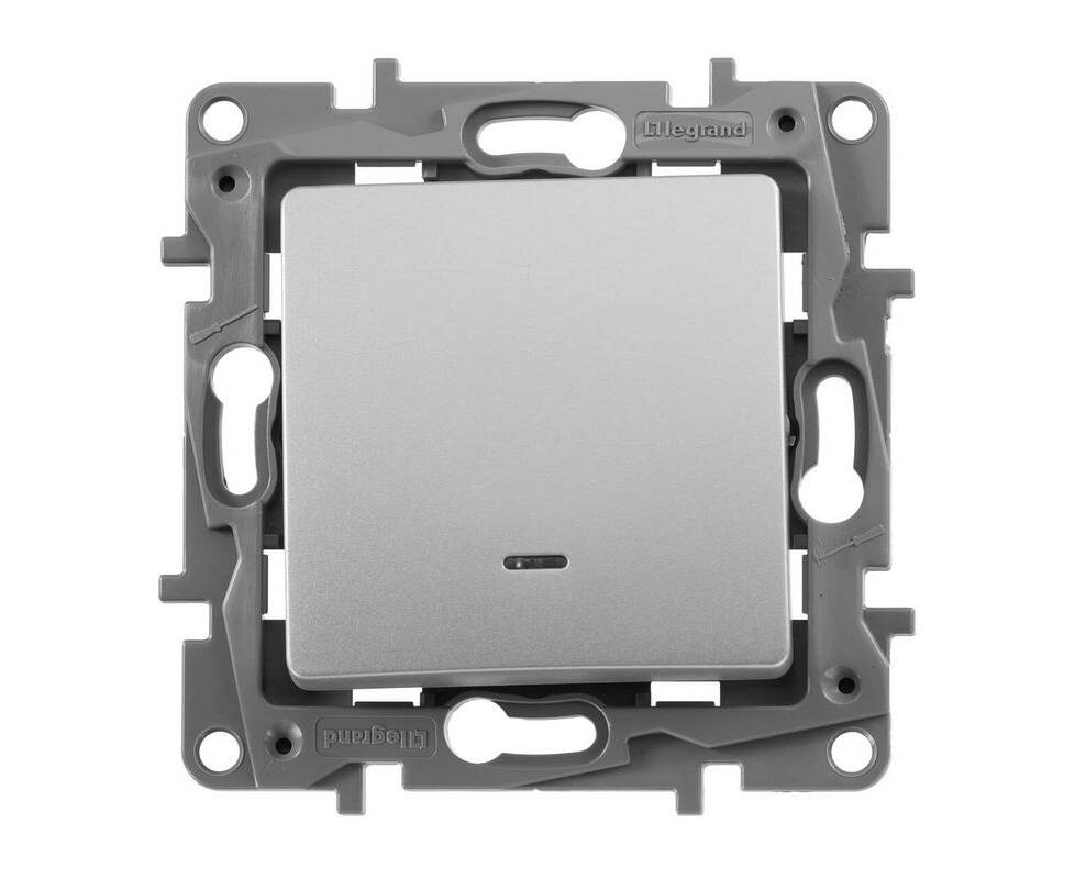 Выключатель 1-но клавишный с 2-х мест (переключатель) с подсветкой, алюминий