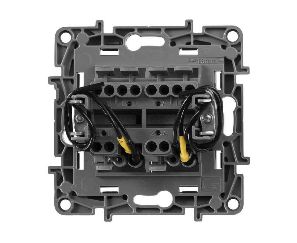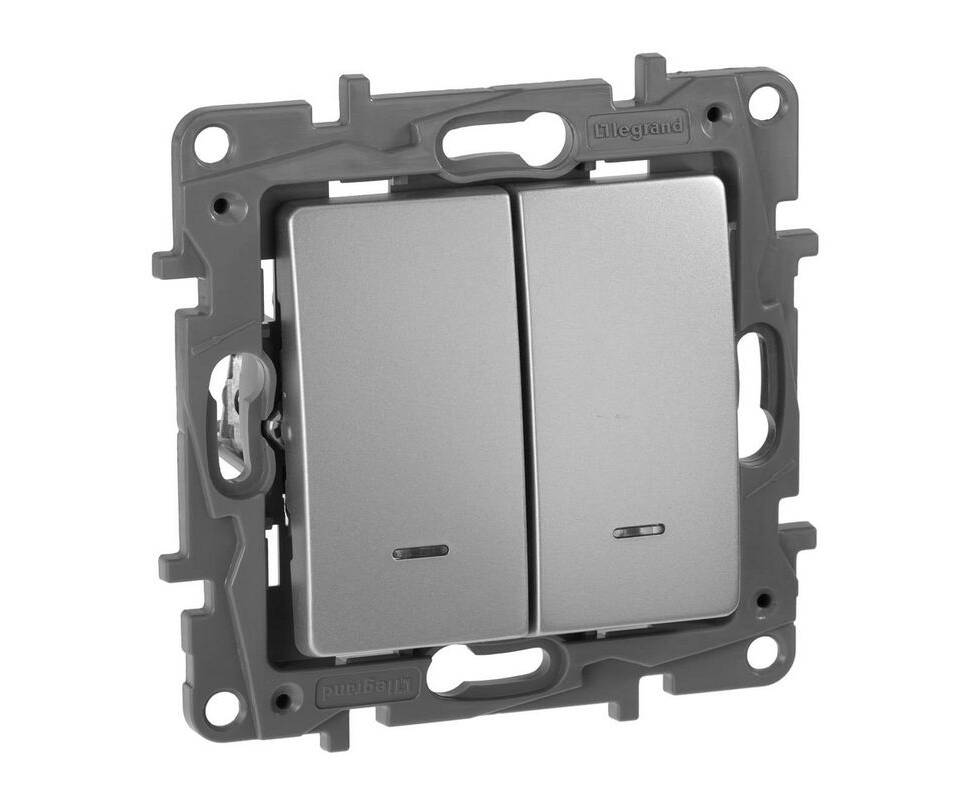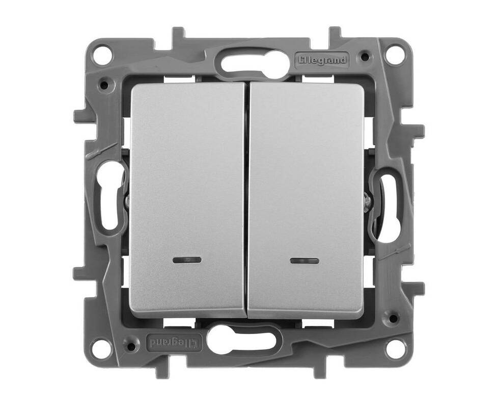 Выключатель 2-х клавишный с 2-х мест (переключатель) с подсветкой, алюминий
